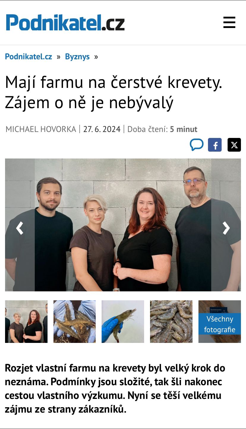 Mají farmu na čerstvé krevety. Zájem o ně je nebývalý.